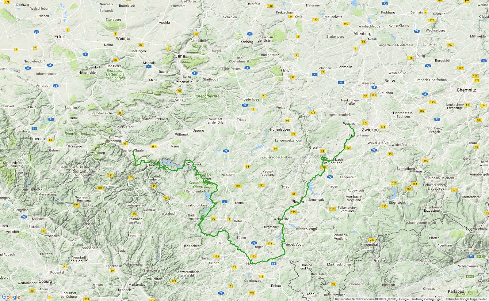 Vorbei an der Göltzschtalbrücke, über Plauen nach Hof – an die Saale .. und dann „nur noch“ an der Saale lang .. Ein enormes bergauf- und ab! Aber landschaftlich wieder einmal höchst empfehlenswert!