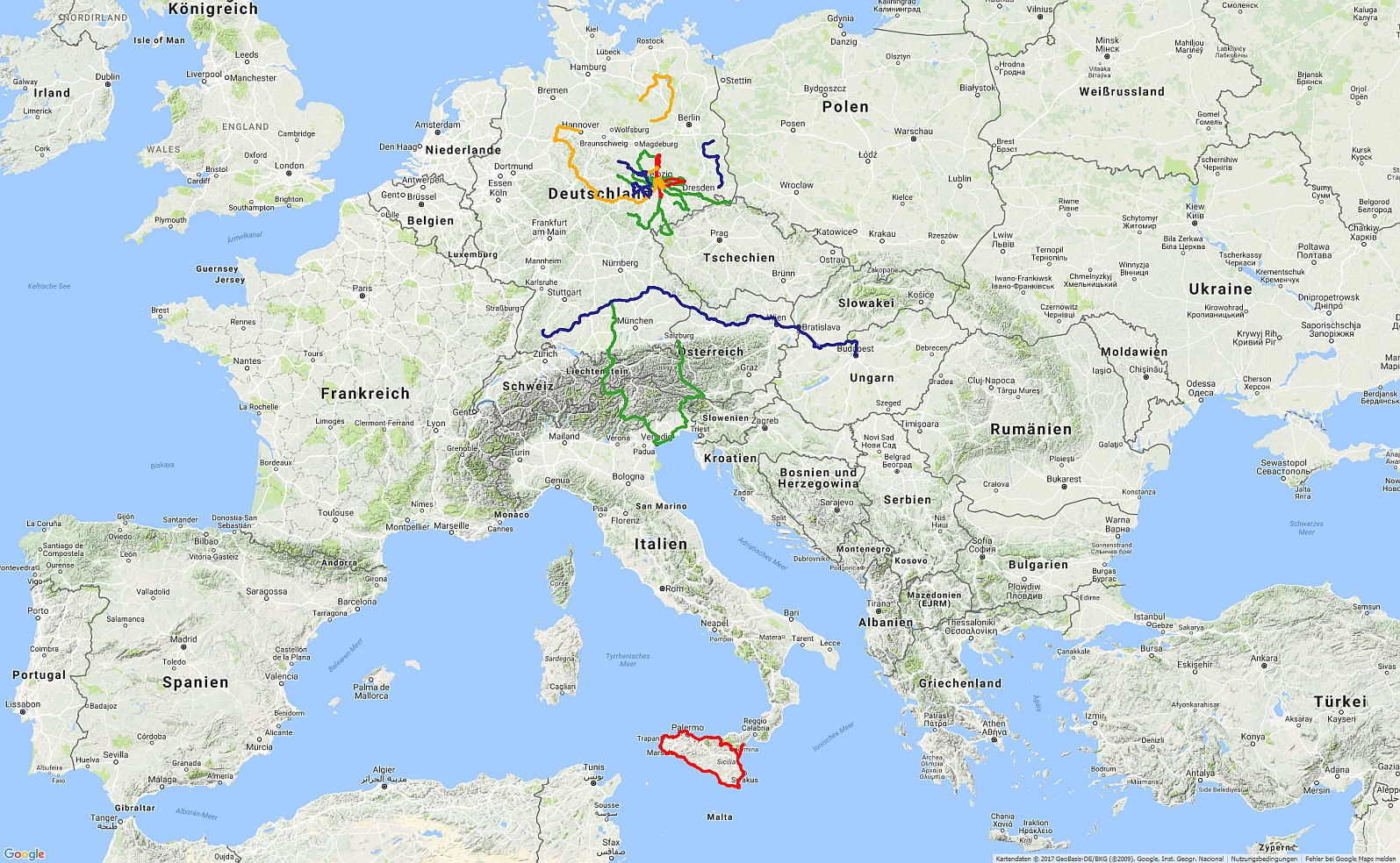 Es sind schon ein paar Kilometer zusammengekommen, die wir seit 2013 gemeinsam mit den Fahrrädern geradelt sind. Hier mal ein kleiner Gesamtüberblick: